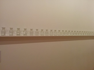 L’être humain n’est fait que de chair, de sang, … et en grande partie d’eau. Et de ce point de vue nous sommes tous identiques. Yoko Ono nous le rappelle, malicieusement, en matérialisant une chanson de 1972, « We Are All Water », écrite avec John Lennon, en alignant plusieurs dizaines de flacons remplis aux deux tiers et sur lesquels figurent simplement le nom de la personnalité que chacun représente. Cléopâtre côtoie Miles Davis, Sid Vicous côtoie Adolf Hitler, Albert Einstein côtoie Fidel Castro, … Une grande leçon d’humilité !
